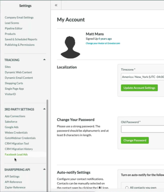 You must be an administrator to access the 3rd party settings. All integrations lie on the 3rd party settings on the dashboard. Right at the bottom of this section is the Facebook Lead Ad prompt.Â