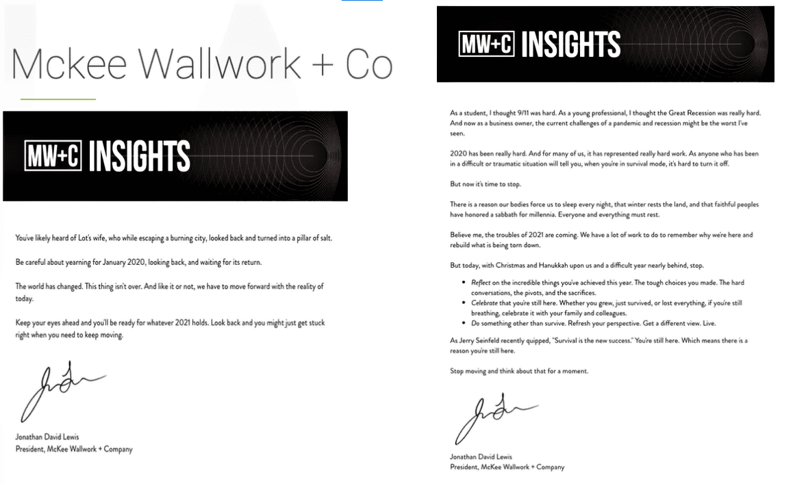 From the layout and design, you can see that this newsletter is very clean-cut and focused. It has a clean header with a consistent banner. The concept here was their ‘Top 10 blog posts of 2020’. The presentation was very well executed, as it allows a reader to continue to do things that resonate with them. Also, the newsletter uses negative space (which means a lot of white space) to let the content breathe. The newsletter has a gallery-like look in terms of the visuals, which shows that they are tapping into modern trends.
