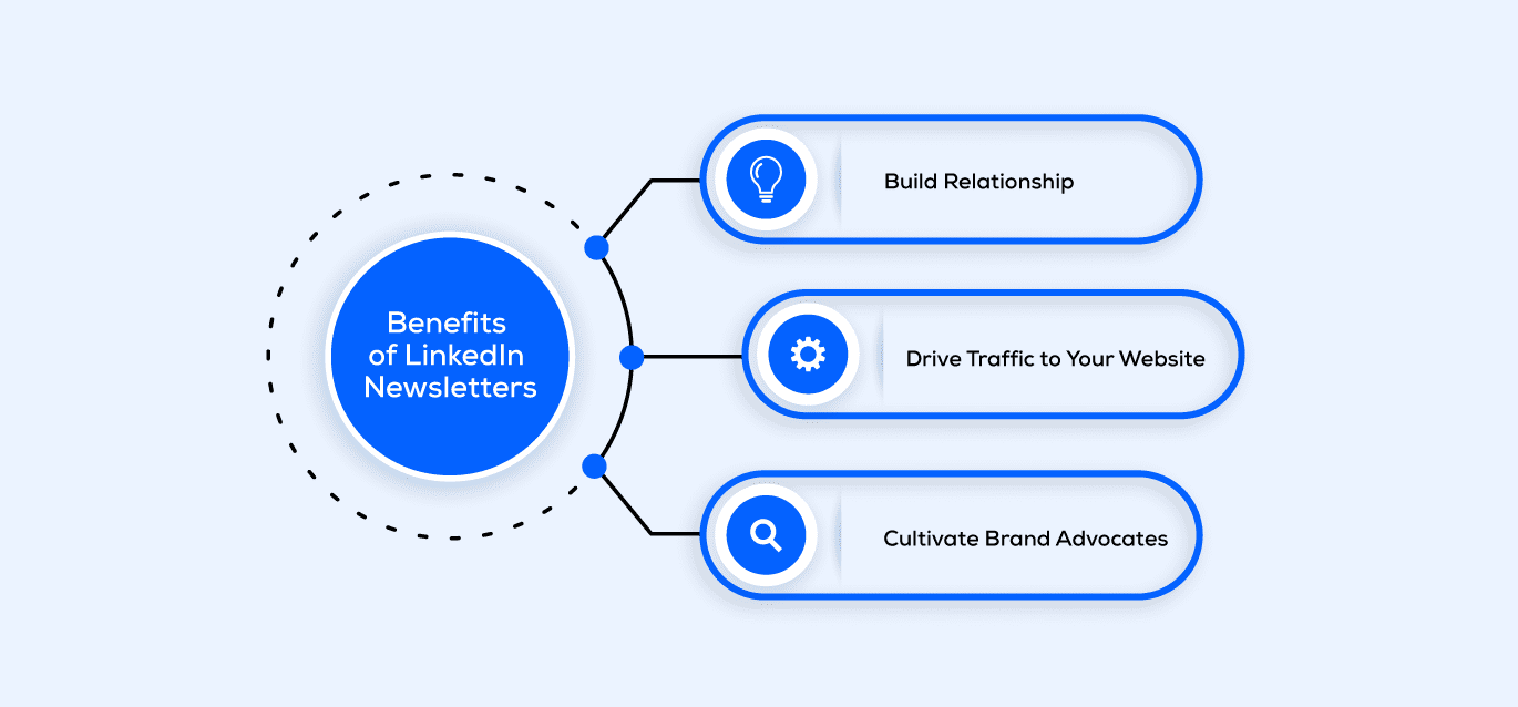 Starting a LinkedIn newsletter is a great way to share your insights, updates, and content regularly with your network. It helps you build credibility, grow your audience, and stay top of mind with your followers, all while positioning yourself as a go-to expert in your field.