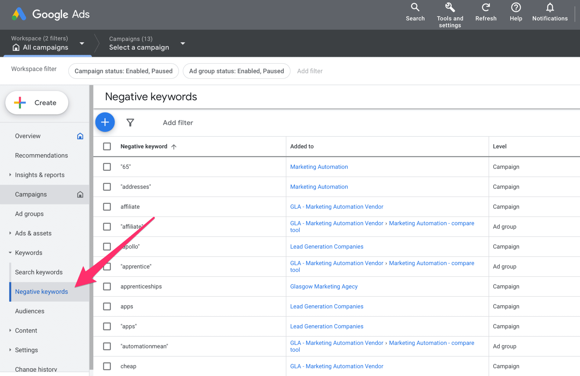 Negative keywords can be just as important as positive keywords when it comes to targeting DSAs. By specifying which keywords you don’t want your ads to show up for, you can avoid wasting ad spending on irrelevant traffic.