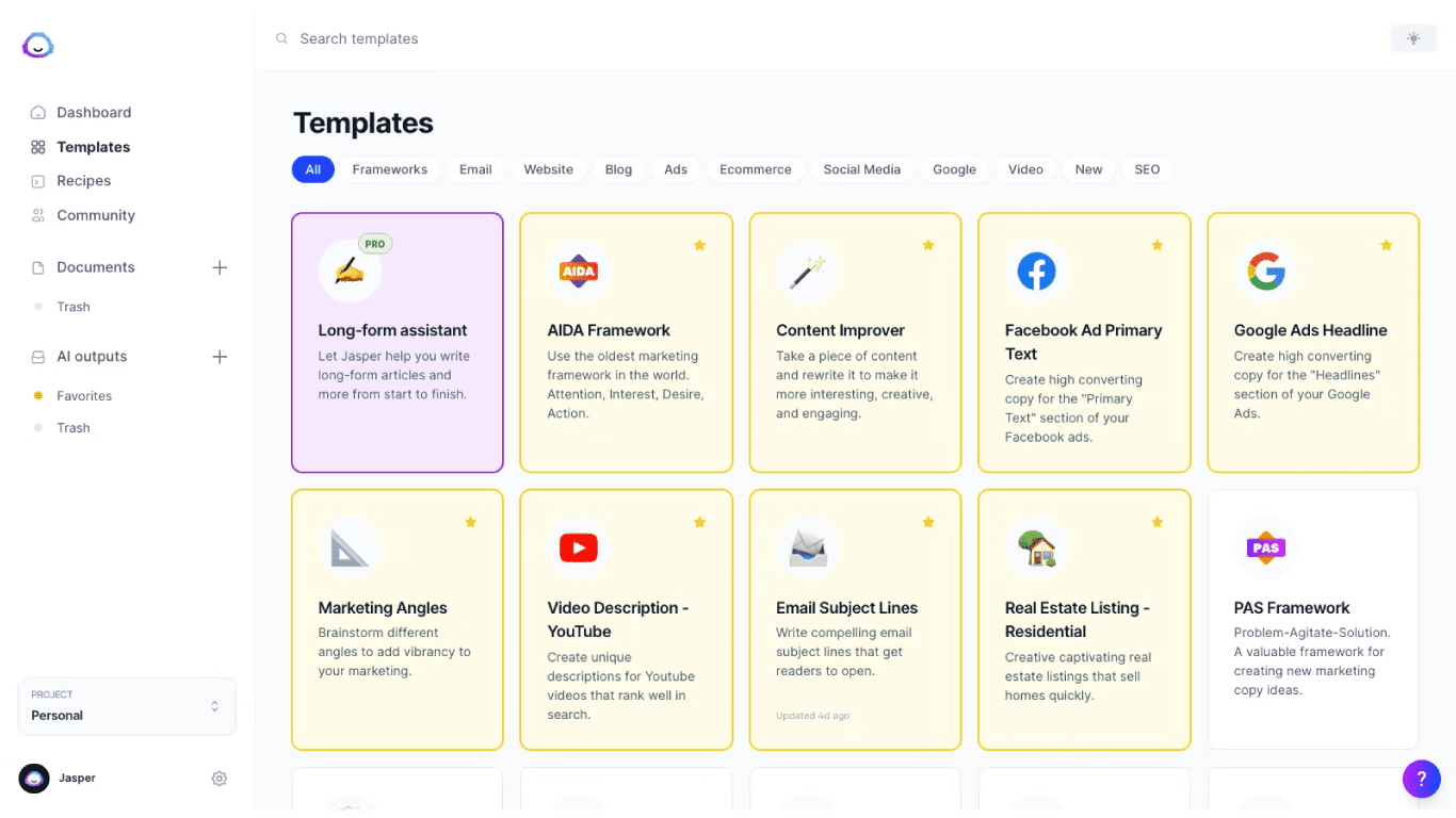 The platform also offers a content analysis feature that provides insights into how well a piece of content will likely perform based on factors such as readability, keyword usage, and engagement metrics. In addition, Jasper can be integrated with multiple platforms, including WordPress, HubSpot, and Google Docs, providing an effective way for content marketers to streamline their marketing efforts.