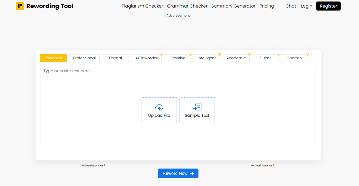 This AI-based rewording tool can help you turn any dull or complex text into an easy-to-read, engaging content. It supports up to 9 different writing modes such as Reworder, Professional, Formal, Academic, Creative, Intelligent, Fluent, Shorten, and AI Reworder.