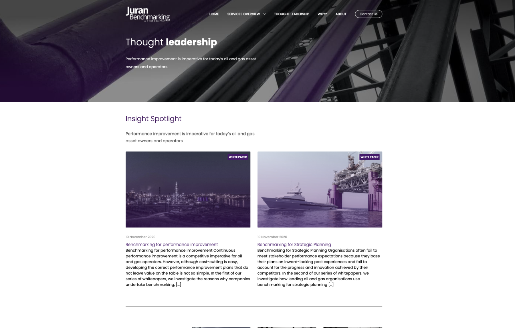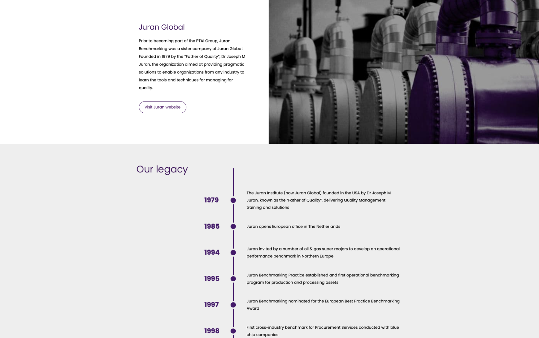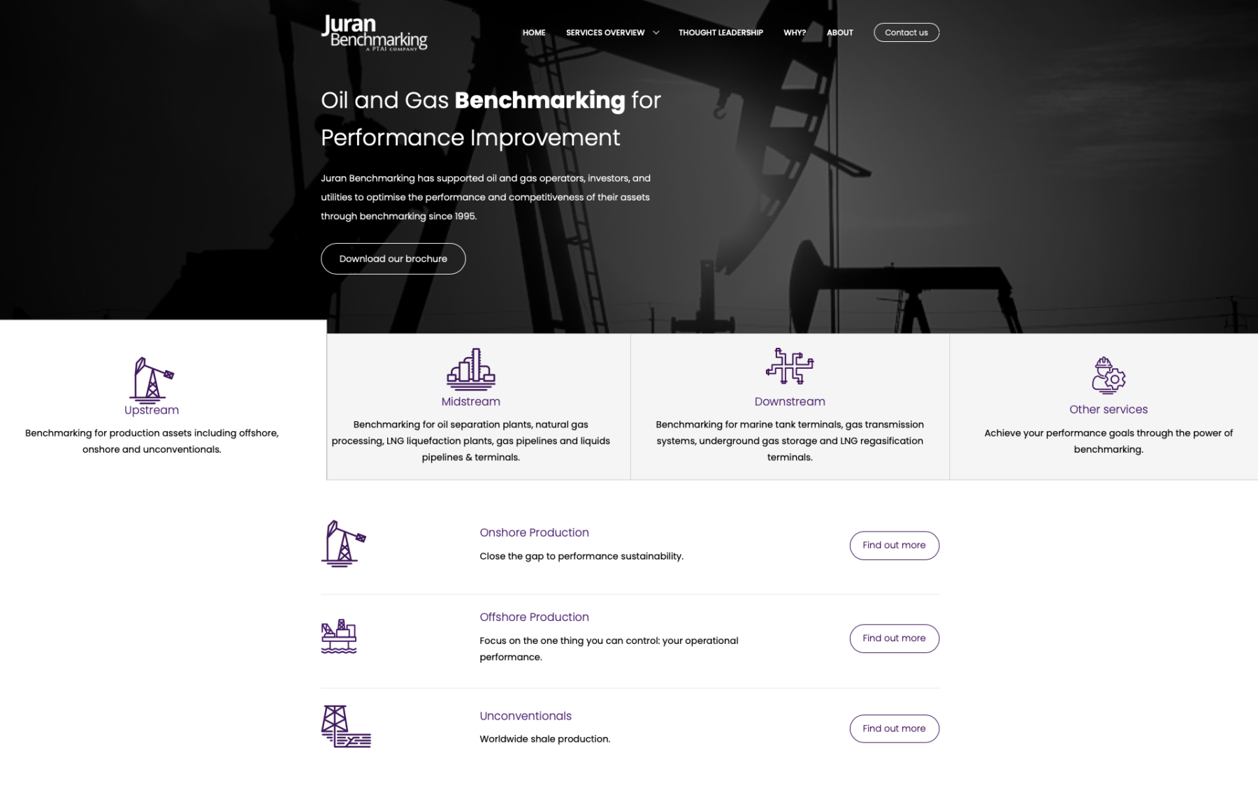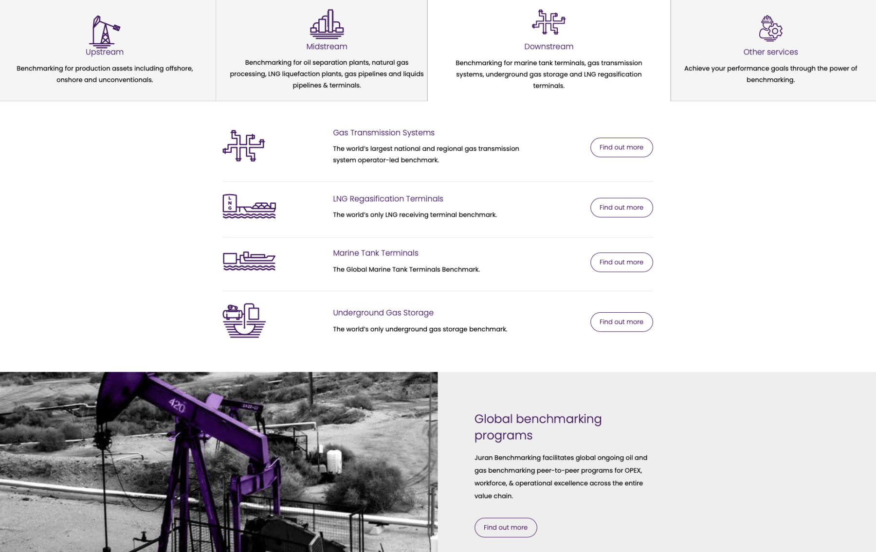 Juran Benchmarking has been a world leader in operational excellence through performance benchmarking across the oil and gas value chain since 1995. Their global peer-to-peer benchmarking programs have helped hundreds of oil & gas asset owners and operators to benchmark the performance of their assets and facilities and develop actionable data-backed plans.