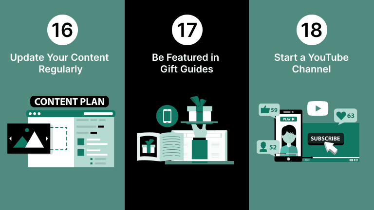 Online magazines and websites typically feature gift guides to match the different holidays of the year. One of the best ways to promote your business is to be featured as one of the products in the gift guide. It takes effort and strategy to be one of the featured products on the list.